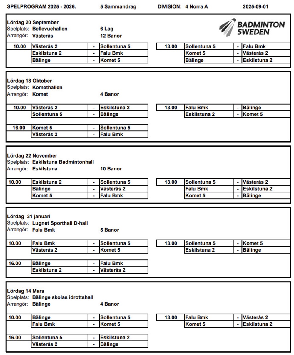 Varje lagmatch har två-tre banor att tillgå för spel, uppvärmning mm.